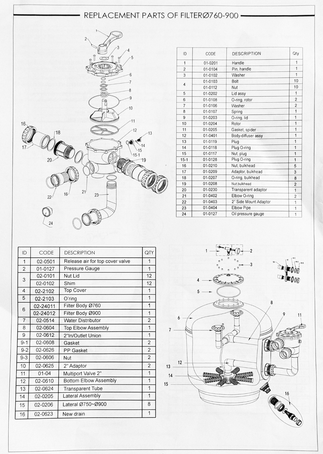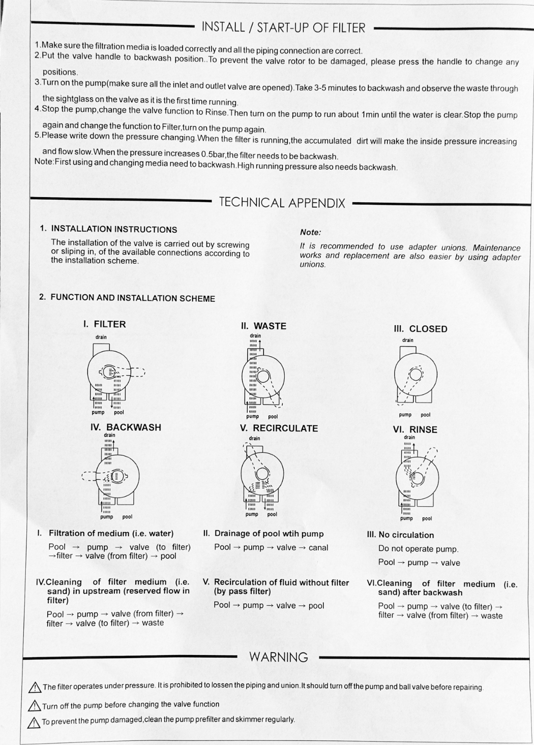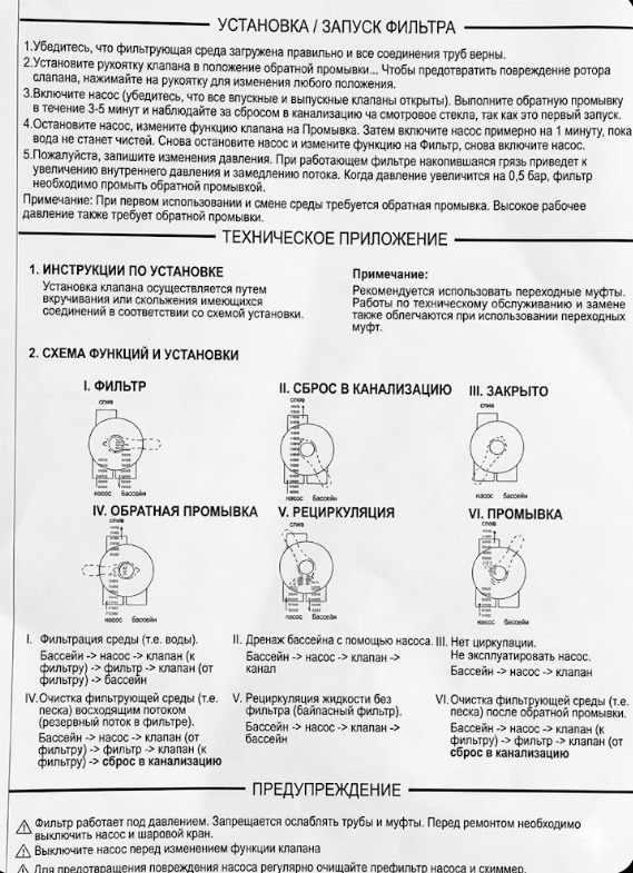 - Рекомендуемая фракция кварцевого песка: 0,4–0,9 мм (кварцевый песок не входит в комплект и приобретается отдельно)