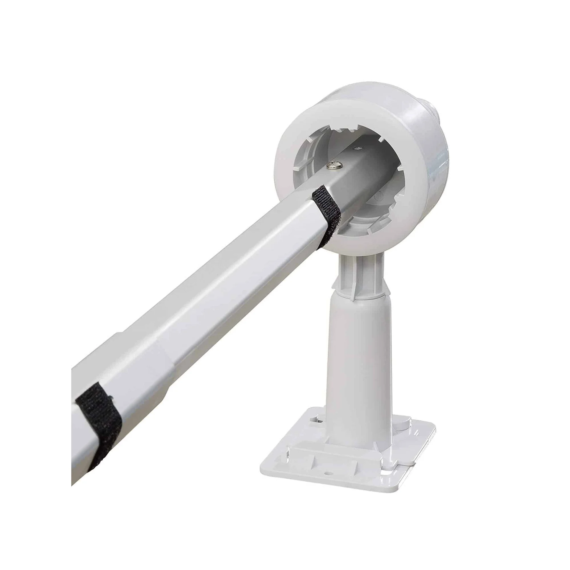 Устройство имеет телескопическую конструкцию и регулируется по длине от 2,1 до 4,45 метра, что делает его универсальным решением для бассейнов разных размеров. Максимальная длина вала (барабана) достигает 4,45 метра, благодаря чему катушка подходит для большинства стандартных каркасных бассейнов.