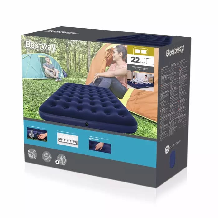 Двухместный надувной матрас Bestway серии Flocked Air Bed предназначен для комфортного сна и отдыха дома, на даче или в поездках. Матрас изготовлен по технологии Coil Beam Construction — внутренняя система усиленных трубчатых перегородок обеспечивает повышенную прочность, устойчивость формы и оптимальную жёсткость даже при длительном использовании.