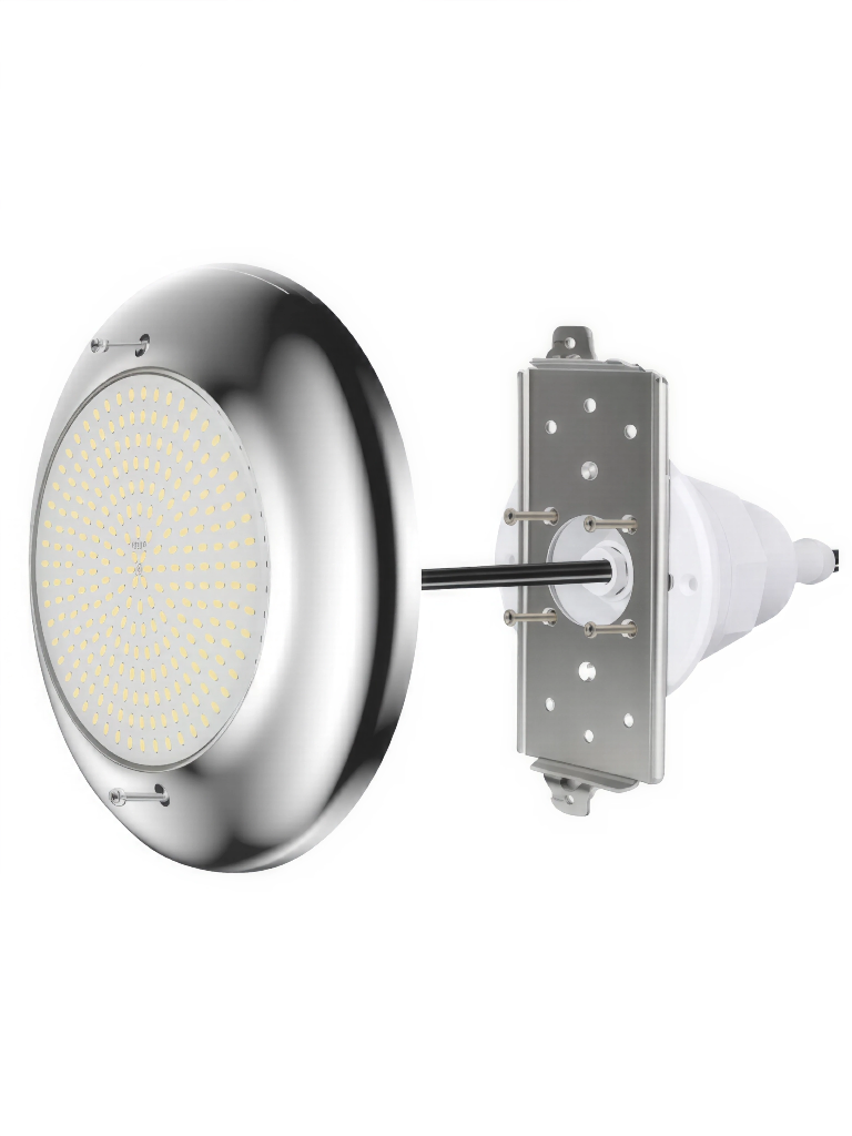 Прожектор обеспечивает яркое и равномерное освещение, подчёркивает чистоту воды и создаёт стильную атмосферу в бассейне. Отличается низким энергопотреблением и длительным сроком службы.