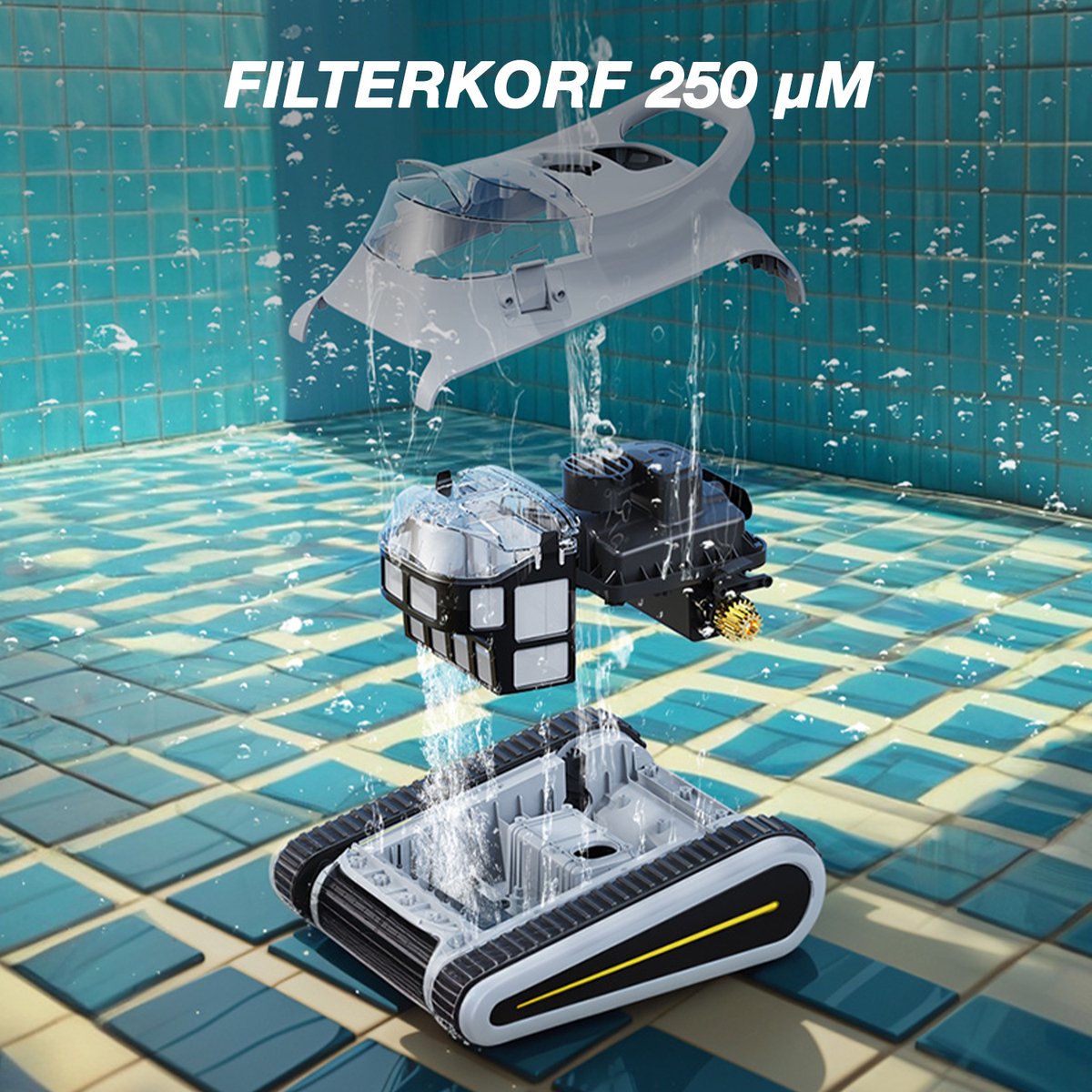Seauto Abys 300 — это автономный аккумуляторный робот-пылесос премиум-класса, предназначенный для эффективной очистки бассейнов площадью до 200 м². Устройство полностью беспроводное, не требует подключения кабелей и запускается одной кнопкой.