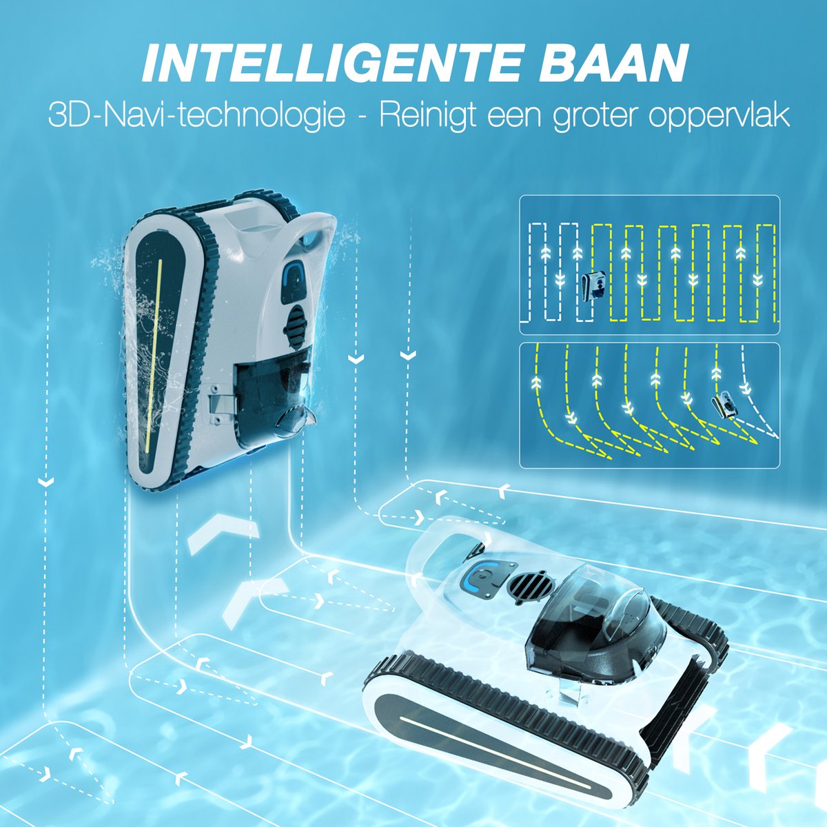 Благодаря интеллектуальной 3D-навигации робот самостоятельно анализирует форму бассейна и выстраивает оптимальный маршрут движения, обеспечивая качественную очистку дна, стен, ватерлинии и ступеней. После завершения цикла или при низком заряде аккумулятора робот автоматически останавливается.