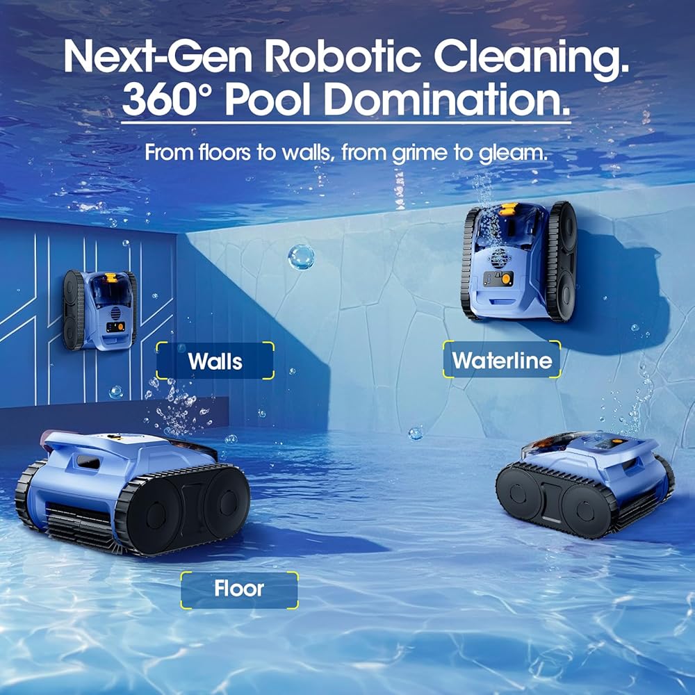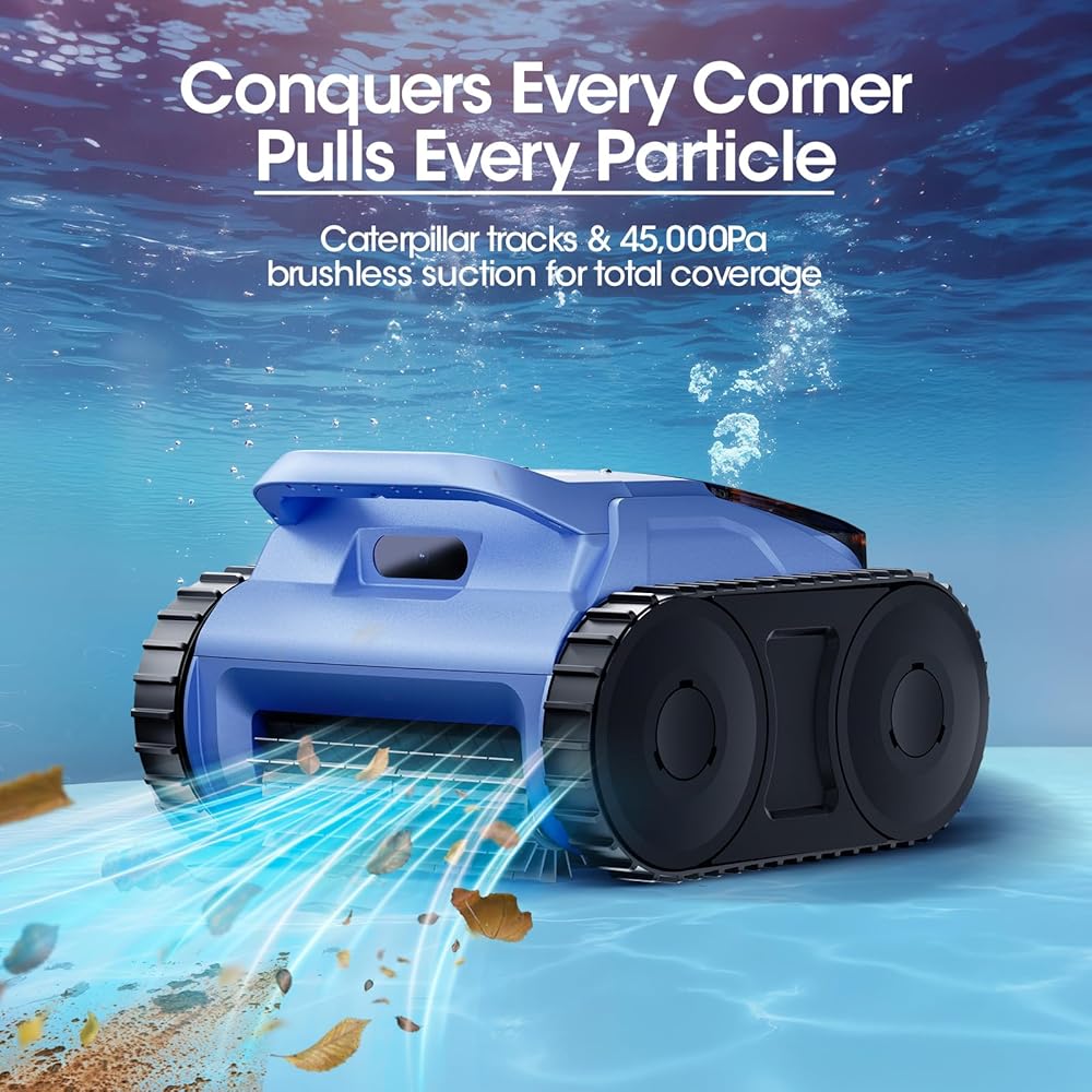 Робот поддерживает несколько режимов очистки и подходит для бассейнов с разными покрытиями: плитка, бетон, винил, стекловолокно. Два мощных бесщеточных двигателя по 180 Вт обеспечивают высокую силу всасывания и эффективный сбор загрязнений — от листьев до мелкого мусора. Герметичная конструкция с классом защиты IP68 гарантирует надежную и долговечную работу под водой.